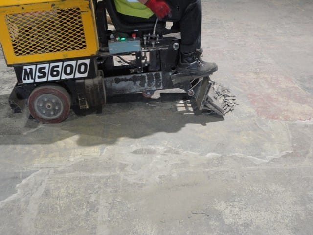 The original sub floor was old granolithic-topped concrete that varied in level by 40 mm which we had to transform into a floor suitable for multiple camera pedestals and multiple sets. Residues of paint and latex screed and adhesive had to be removed using a combination of preparation machines.