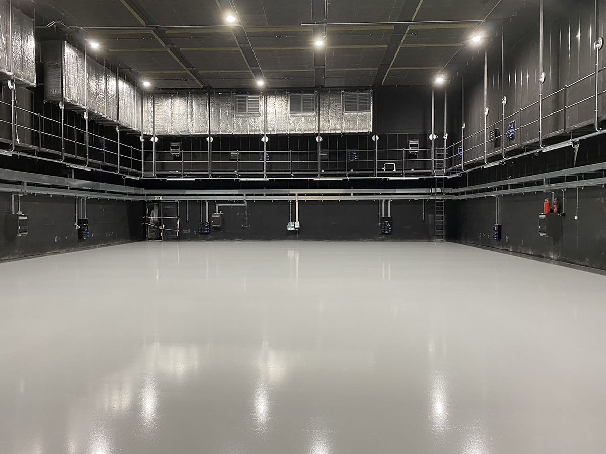 The Elgood Universal Television Studio Floor with a our standard semi-gloss finish in the colour Dusty Grey RAL 7037.