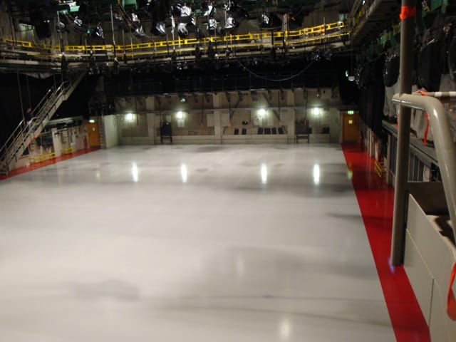 The floor is free of undulations, inclines and surface irregularities. These details are of no consequence on most floors, but totally unacceptable in a modern HD television studio.