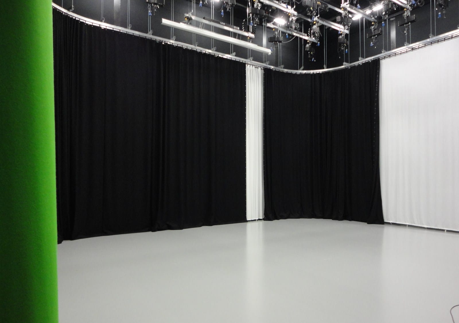 - Areas: Two state of the art television studio floors totalling 285 sqm, one with a blue screen infinity curve