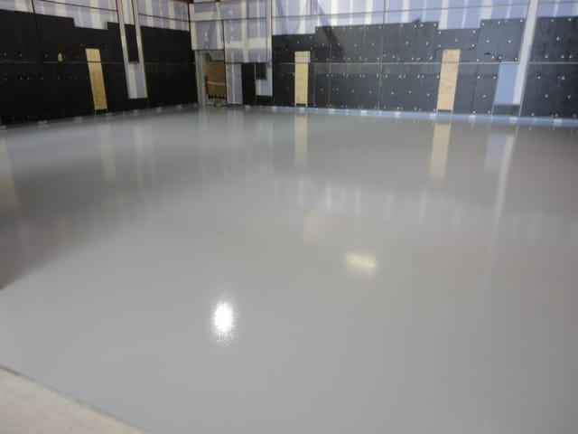The floor is free of undulations, inclines and surface irregularities. These details are of no consequence on most floors, but totally unacceptable in a modern HD television studio.