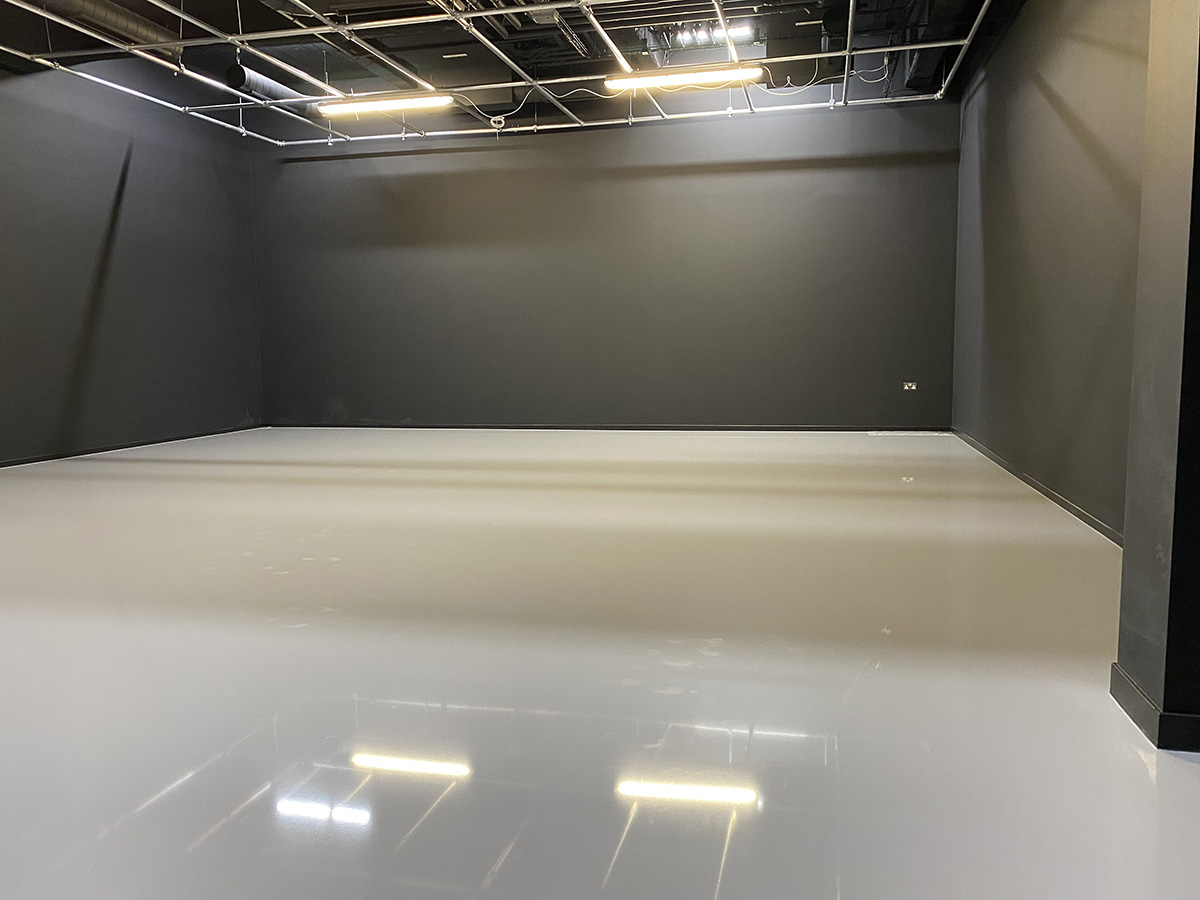 The floor is free of undulations, inclines and surface irregularities. These details are of no consequence on most floors, but totally unacceptable in a modern HD television studio.
