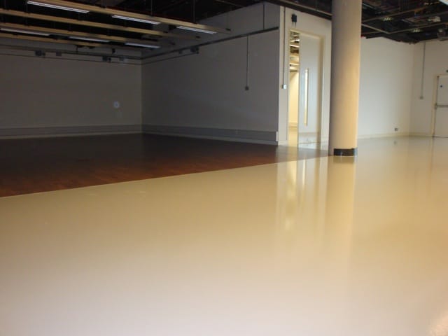 The Studio floor can receive semi permanent studio floor paints such as Mylands and be scrubbed clean as a matter of routine.
